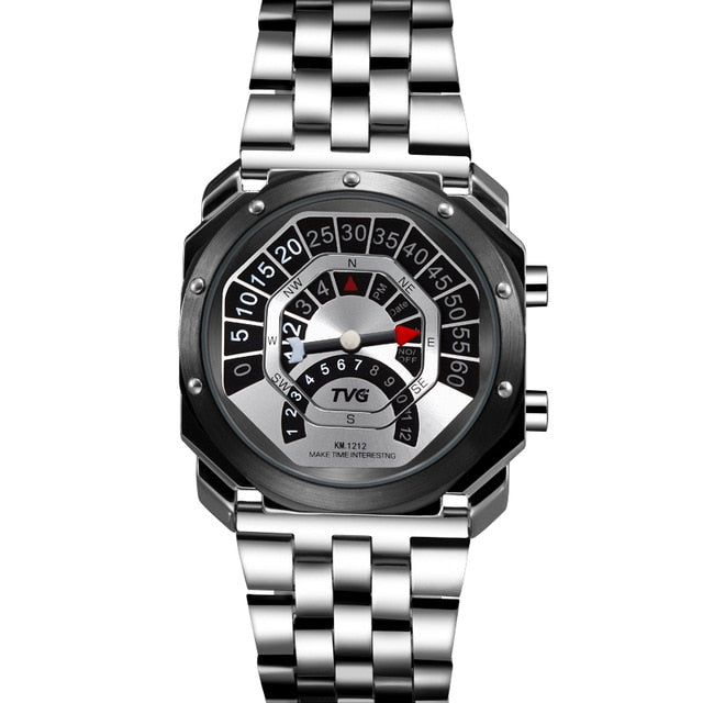 TVG Mens New Square Watch Compass Hiking Mountaineering Watch Full Steel Waterproof LED Watch Men Watch Naviforce Sport Watches